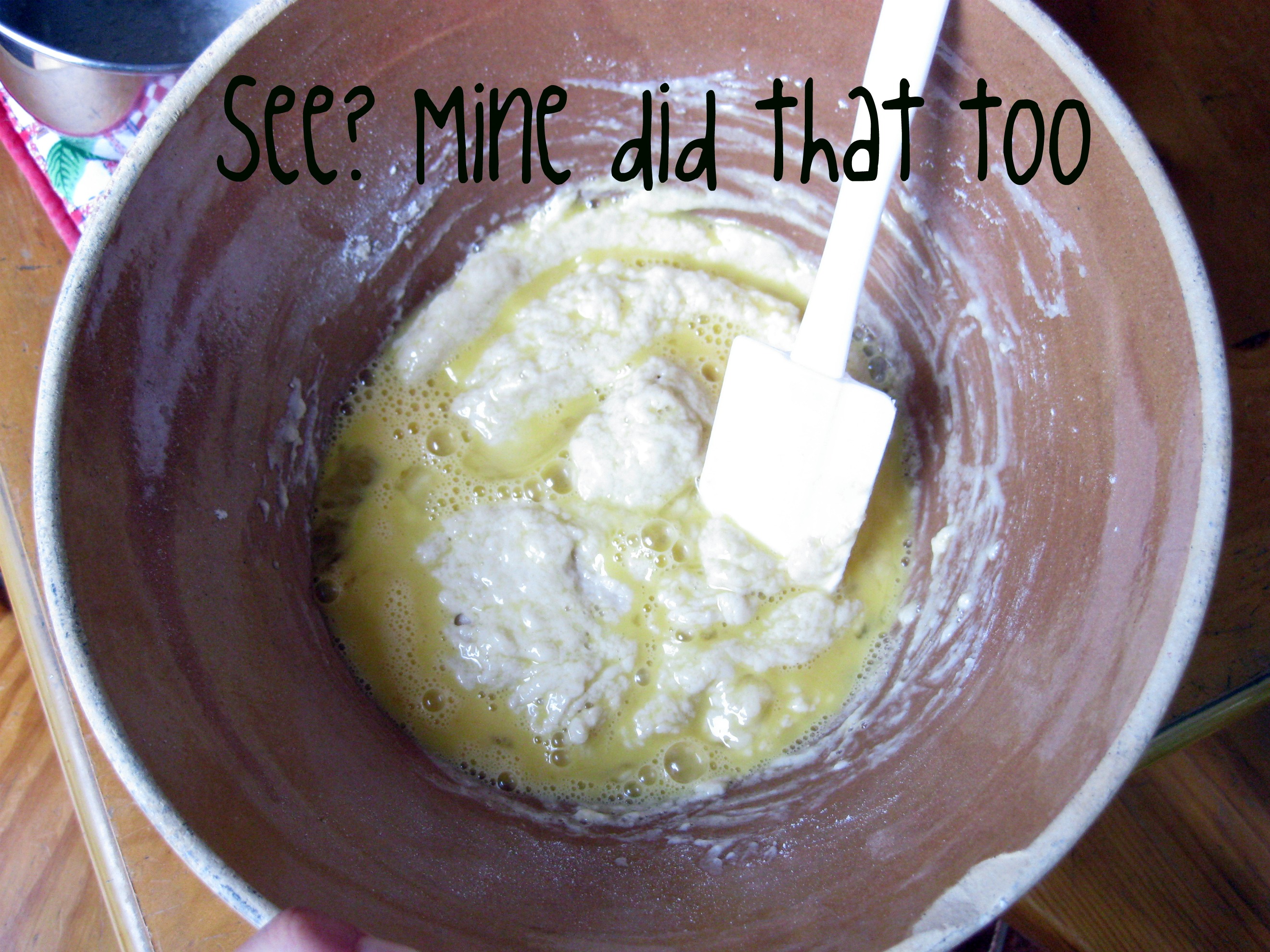 Add in those eggs.  They WILL incorporate.  Trust me.  Just keep mixing.  Don’t quit until they are actually mixed in (no lying to yourself)