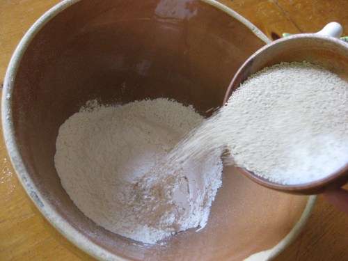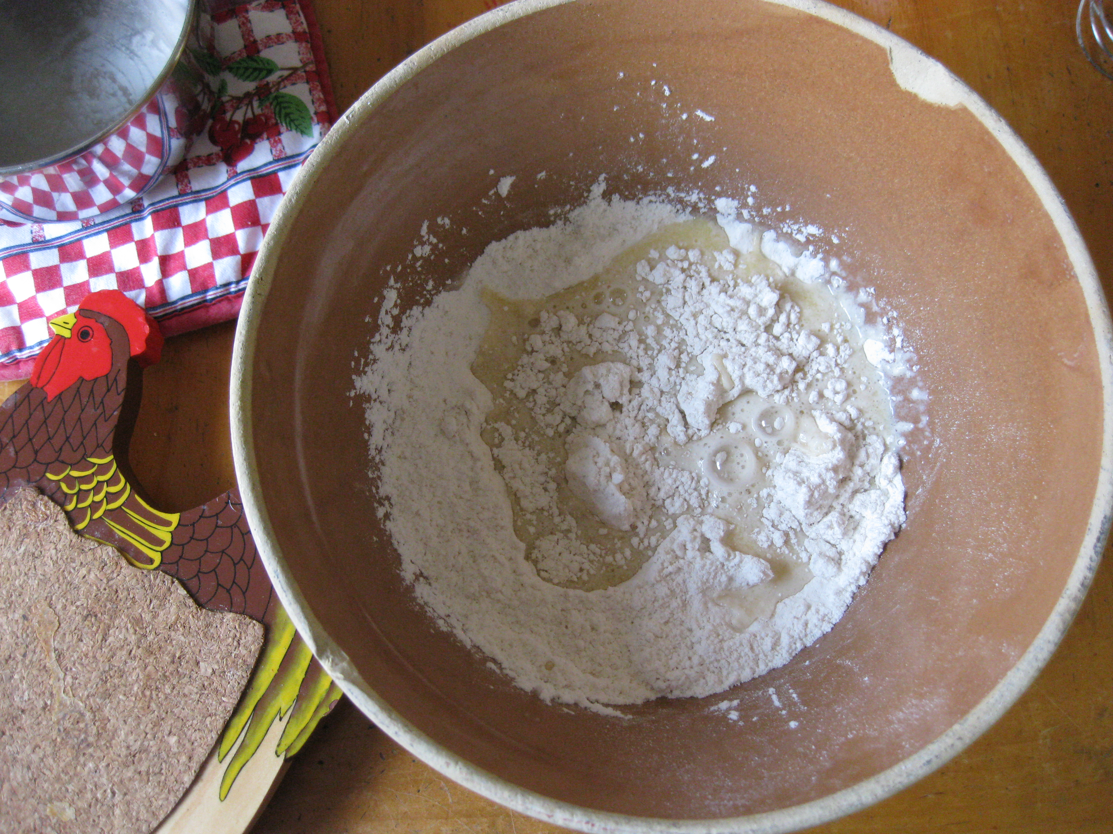 Mix those dry ingredients (flour, sugar, yeast, salt)