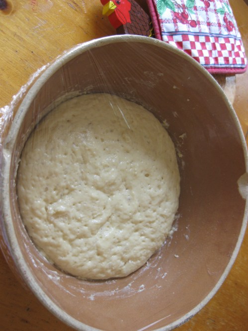 **note: this is where you can stick it in the fridge.  let it double then just pop the whole bowl in there.  the next day just let it sit on the counter for about a half hour before you start constructing your masterpiece