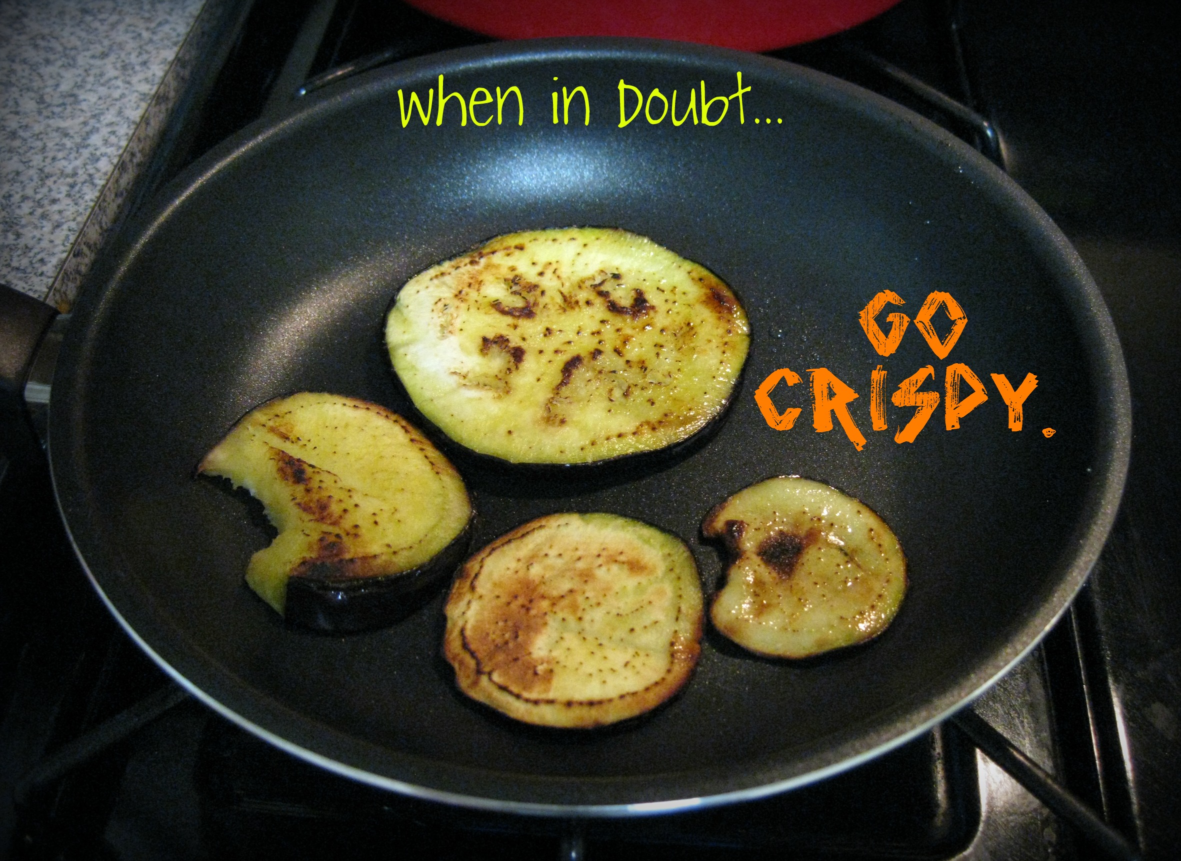Because I’ve got these freakin eggplants and I have never actually cut into one and I have no idea what to do with it.