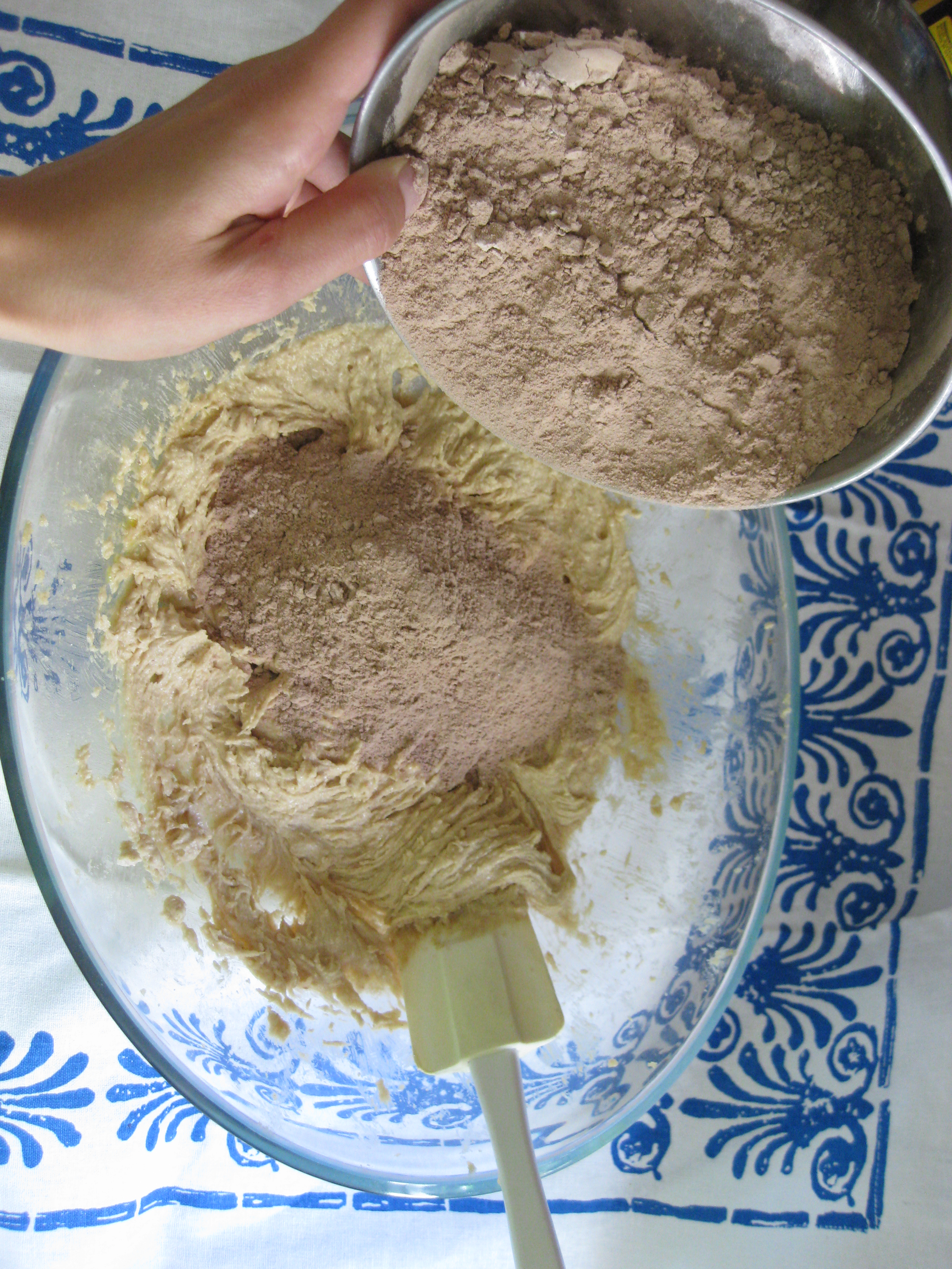 2. In a medium bowl, whisk together flour, cocoa, baking soda, and salt. Set aside.