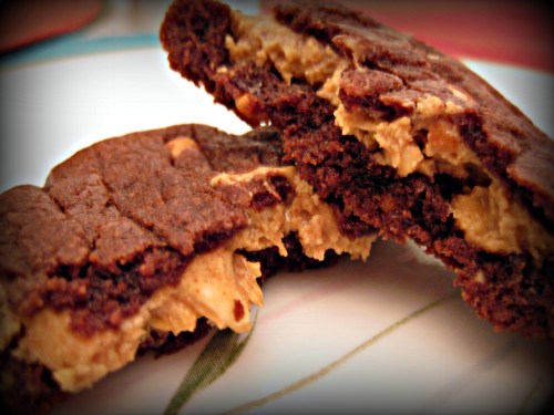 So how about ooey gooey decadently rich chocolate cookies with peanut butter filling?
