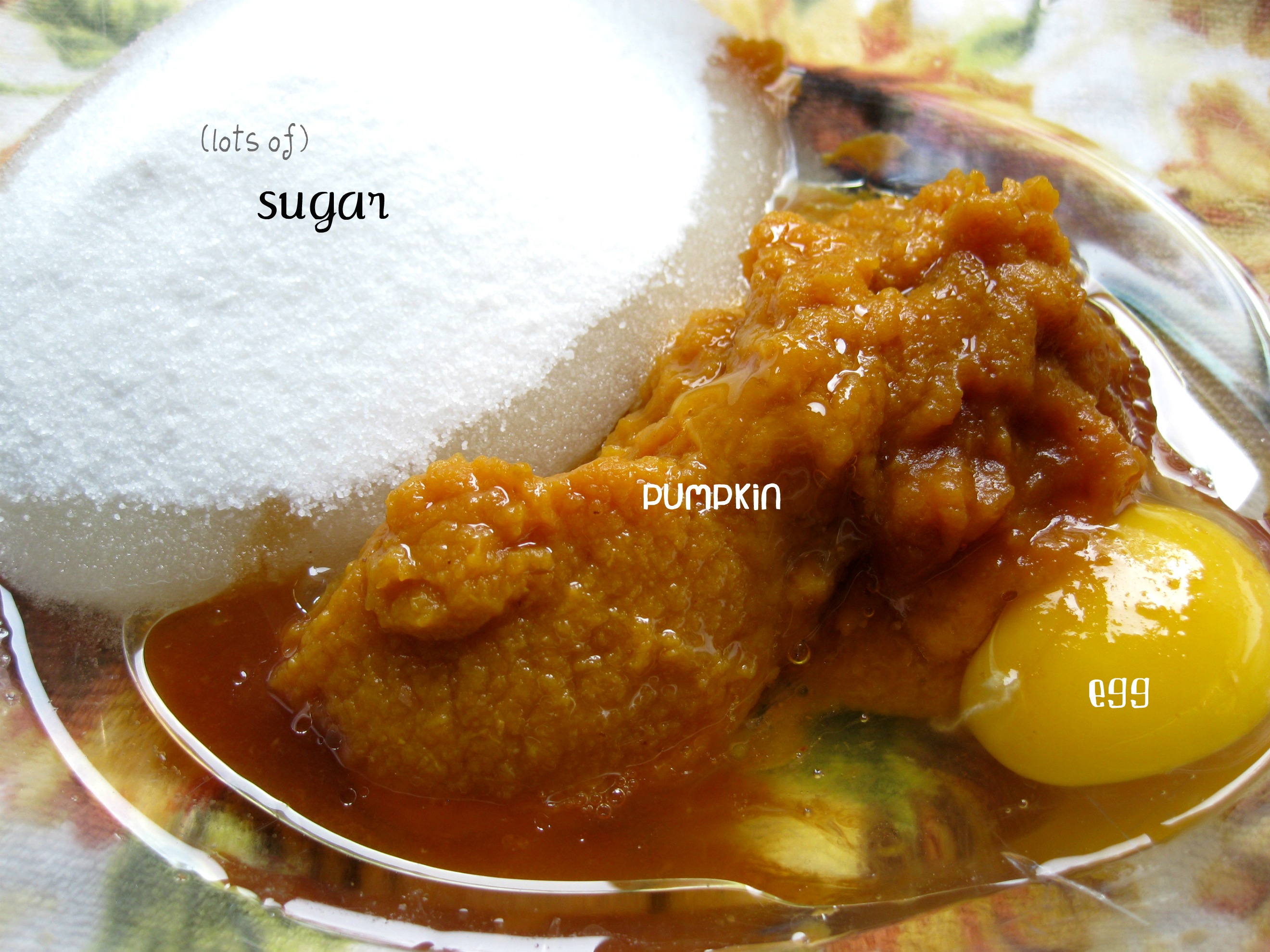 4. In another bowl, combine the pumpkin with the oil, egg, vanilla, and sugar. Mix until smooth.