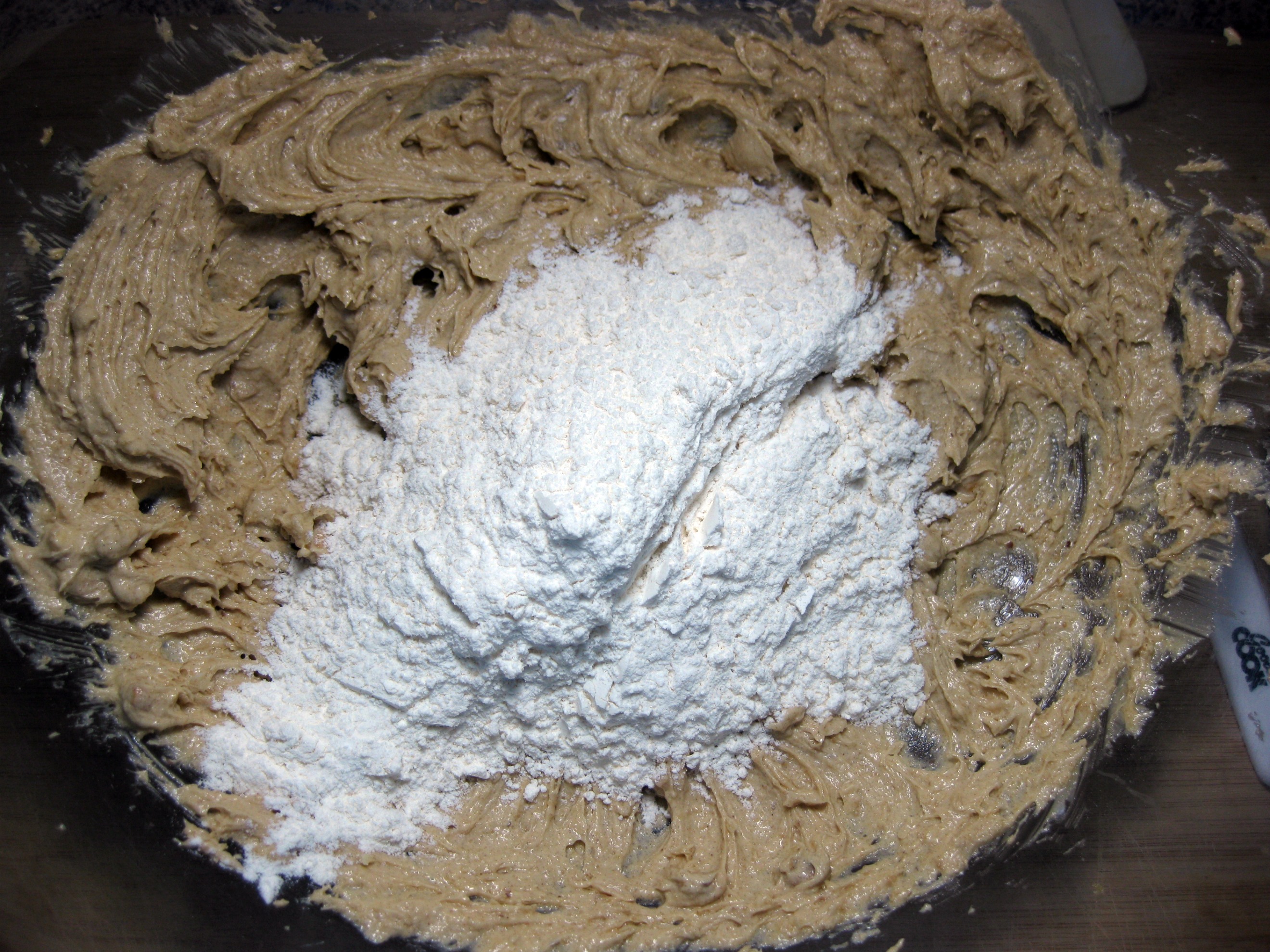 5. Gradually beat the flour mixture into the peanut butter mixture.