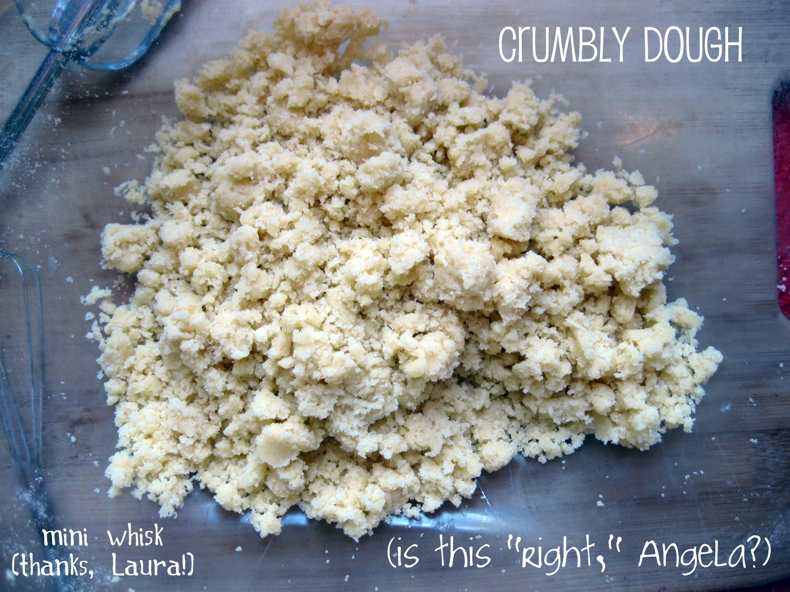 5. Gradually add the flour mixture to the butter mixture. The dough will be crumbly but it will still hold together