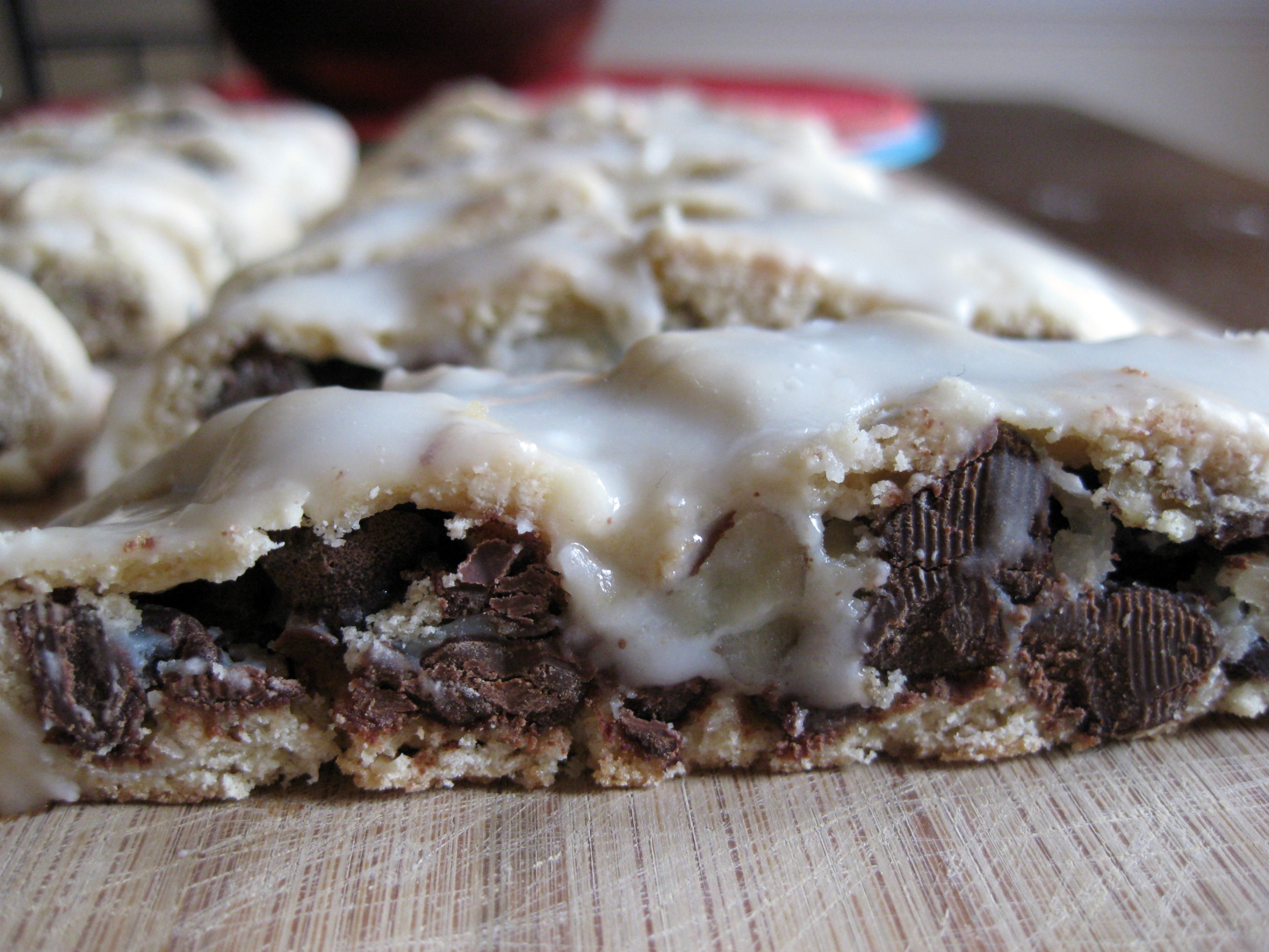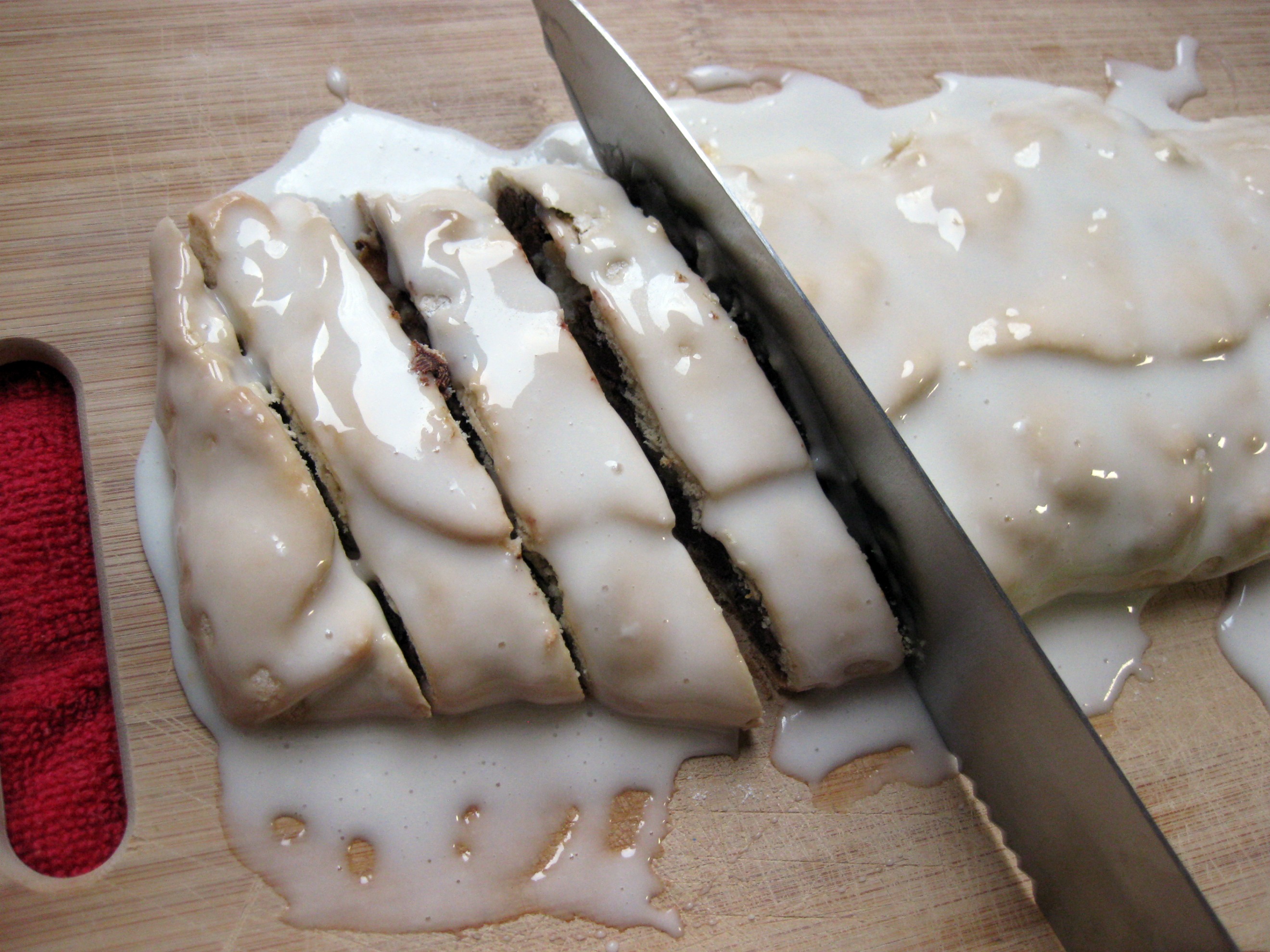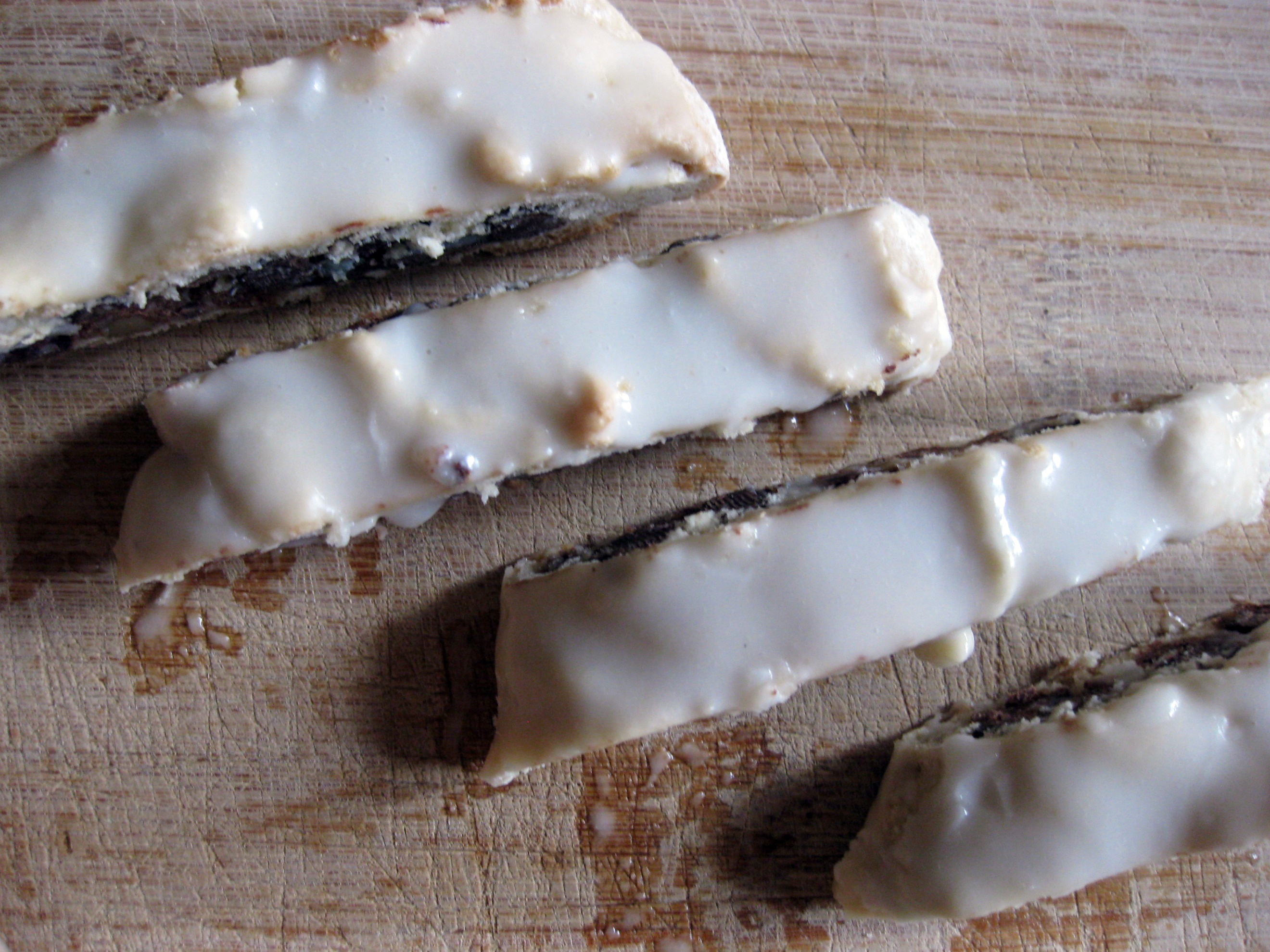 8. Completely cover each strip with the frosting then cut into diagonal strips