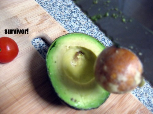 Chop at that big sucker of a pit with your knife so it sticks in there like this: