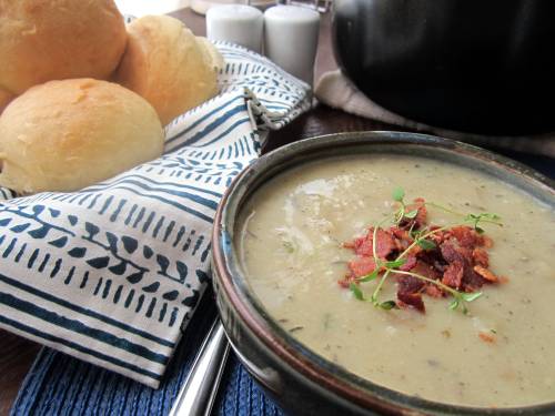 - When the potatoes are soft, remove from the oven and set aside to cool. Place the prepared cauliflower in the 400 degree oven and roast until it is soft and starts to brown (about 15 minutes for me).