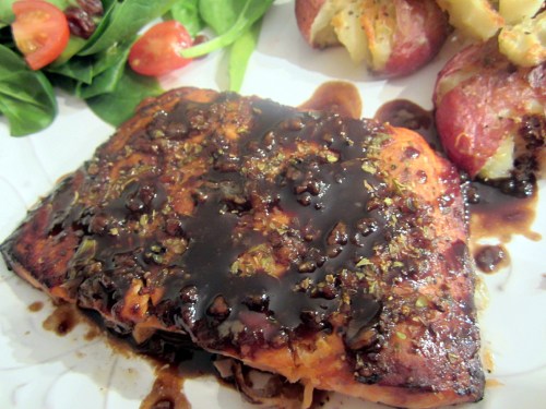 Balsamic glazed salmon.