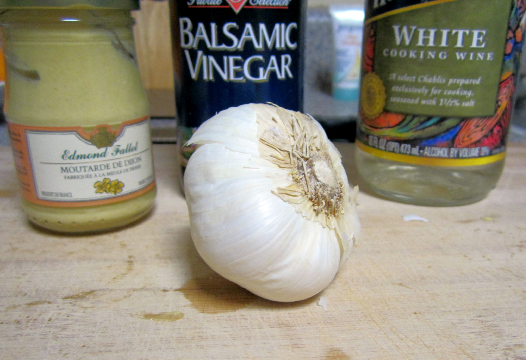 So my fancy pants mustard stopped putting on airs long enough to hang out with balsamic vinegar, white wine, mustard honey and garlic and make some serious magic together.