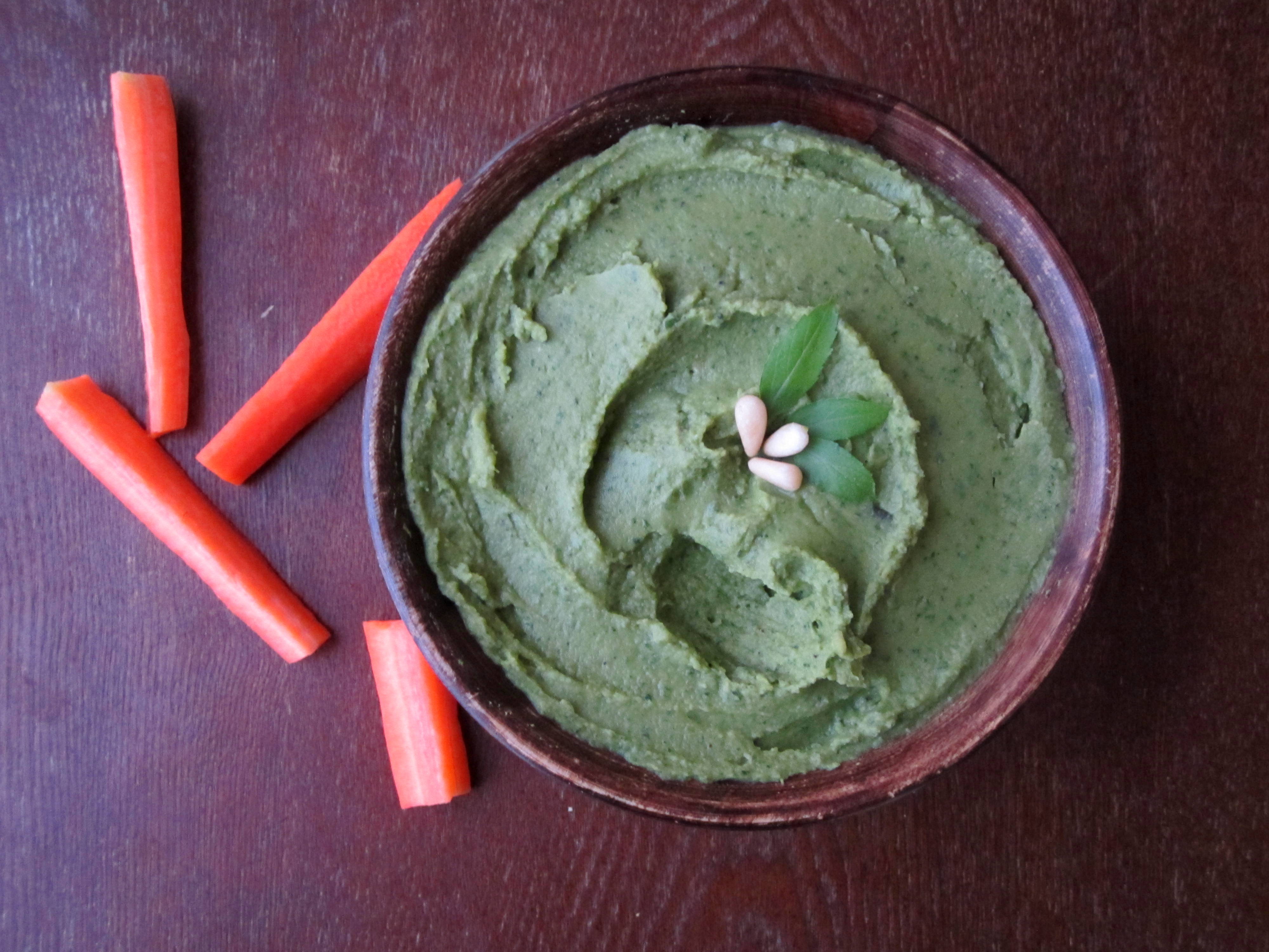 3. Stir in pinenuts and drizzle with olive oil (if you want).  Serve as a dip for veggies or crackers or use as a spread for a sandwich.  Store in the refrigerator in a sealed container.  It will keep at least a week.
