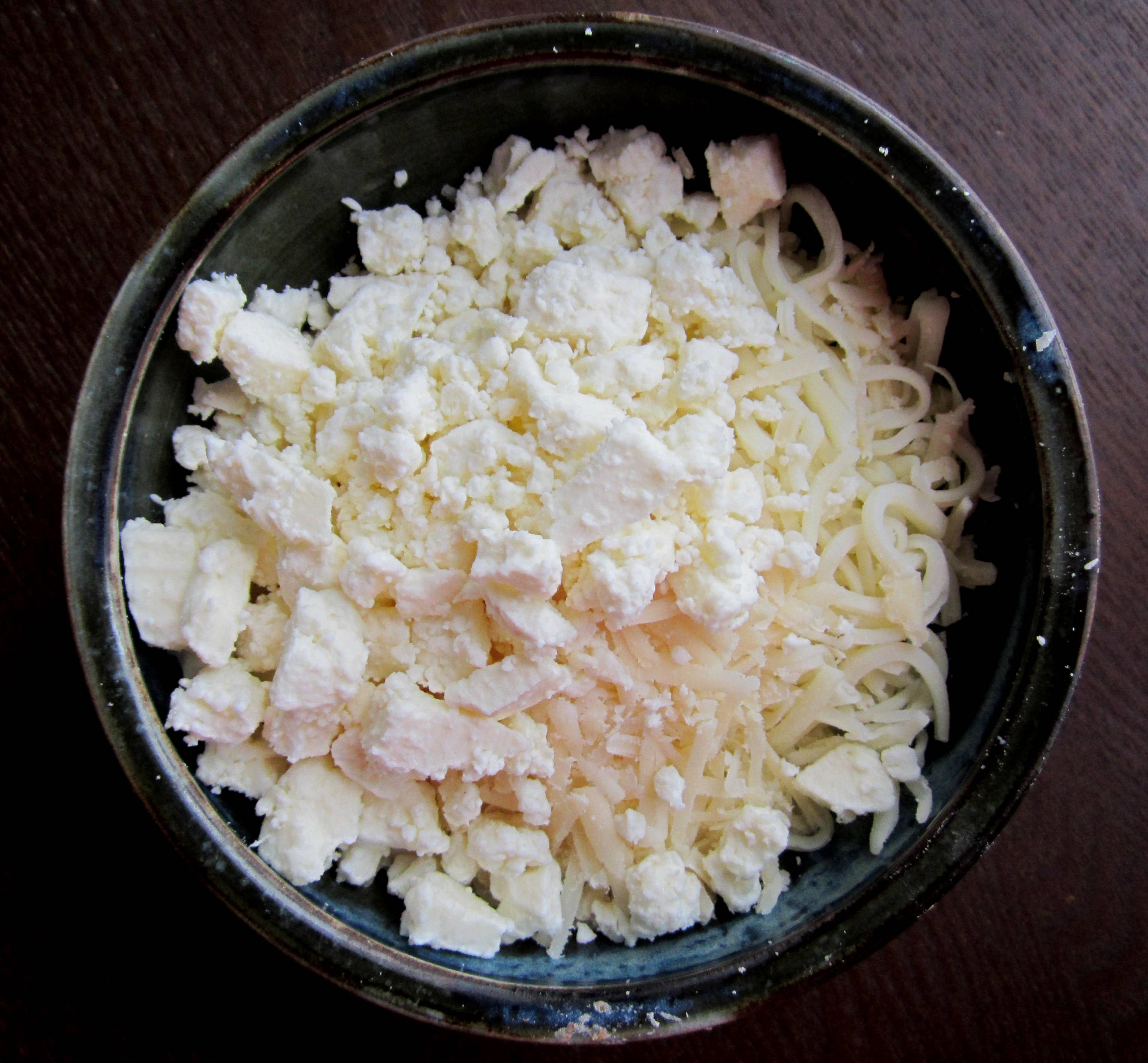 **Choose whatever cheeses you want!  Make sure you include mozzarella or another soft melty cheese to get that awesome texture.  Also let’s be real: want more cheese? Do it.  Go crazy.